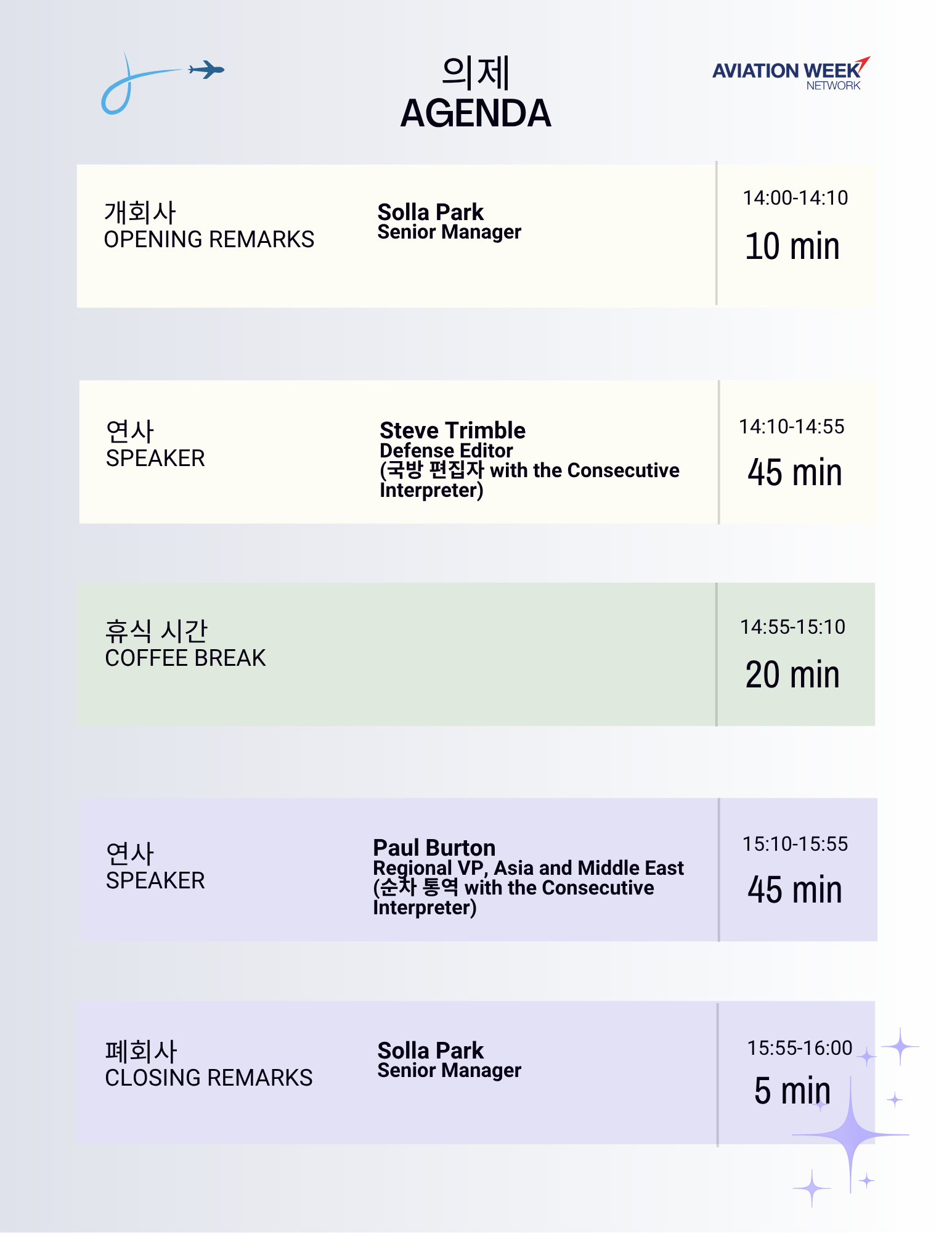Held upon the background of an uncertain geopolitical landscape and shifting alliances, Aviation Week Network is pleased to present the South Korea Aerospace Industry Briefing 2025 — a high-impact session tailored for Korean A&D professionals and industry leaders.