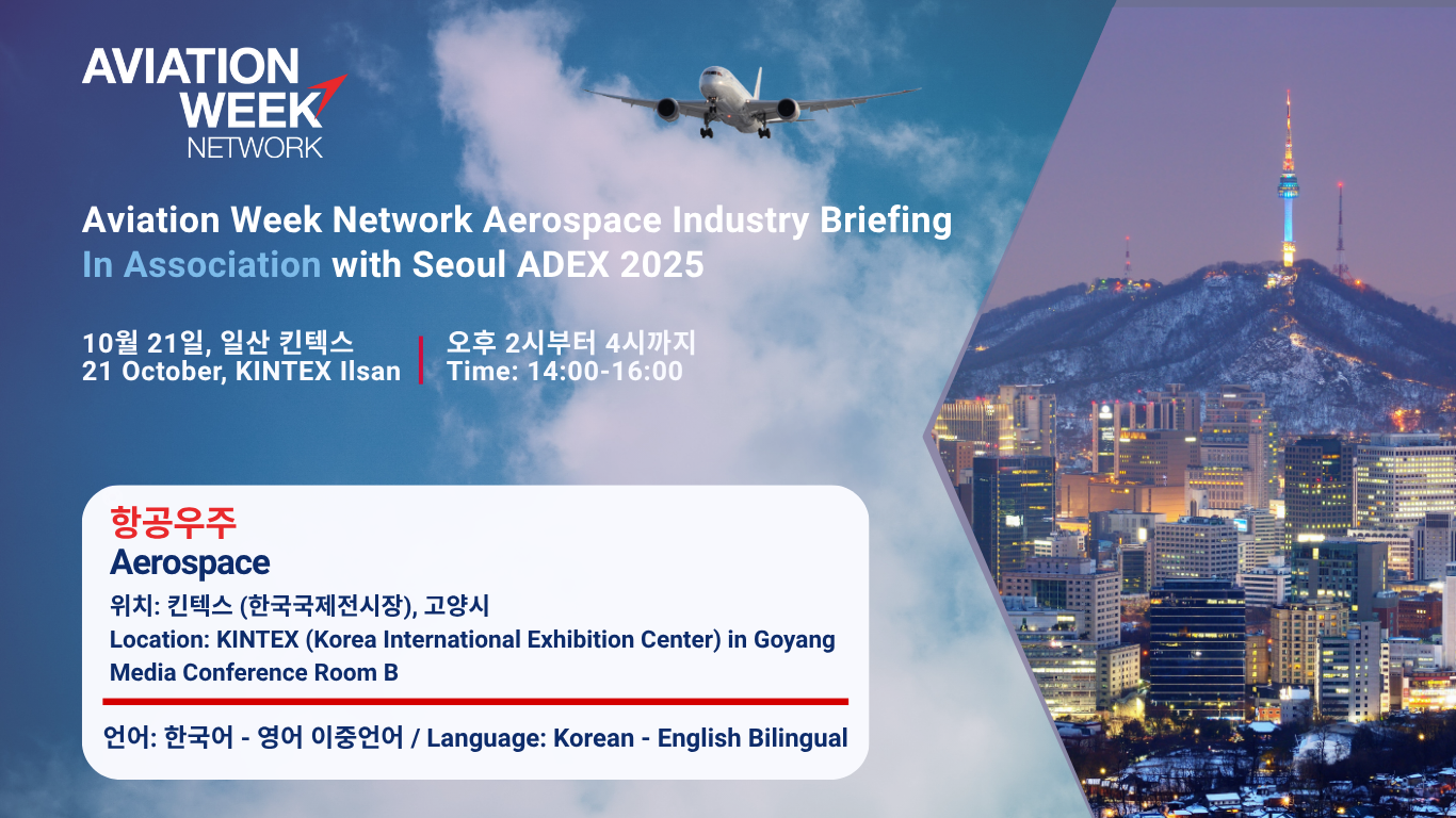 Aviation Week Network will host the Korea Aerospace Industry Briefing on October 21, 2025, alongside ADEX 2025. It will bring together aerospace and defense industry leaders and experts at the KINTEX Exhibition Center in Seoul for an essential industry gathering
